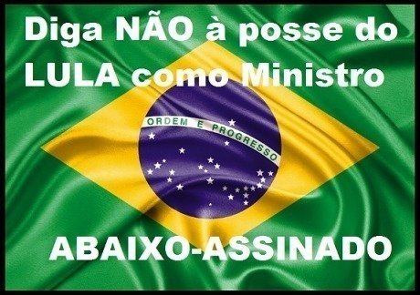 Convoco a todos os indignados que diga NÃO à posse do Lula como Ministro. Não vamos cruzar os braços e permitir tamanho absurdo. Vamos todos, em uma única voz, dizer NÃO para esse ato insano.